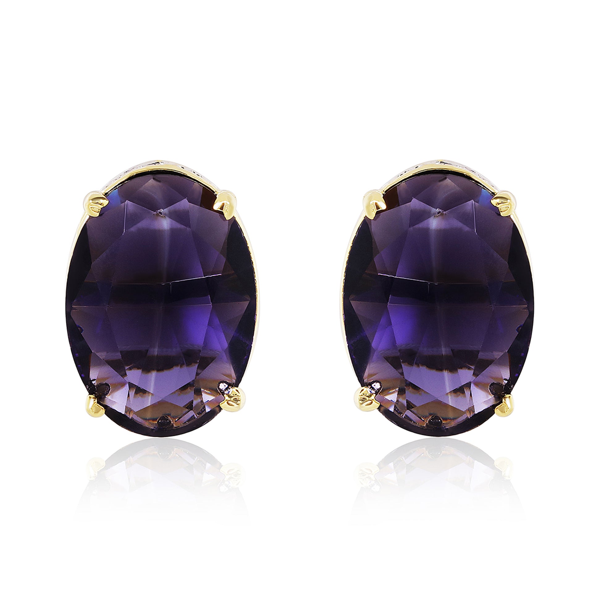 These stunning earrings feature a beautifully cut purple gemstone at the center, surrounded by delicate baguette settings that frame the stone perfectly. A timeless piece that adds a touch of refined glamour to any look.