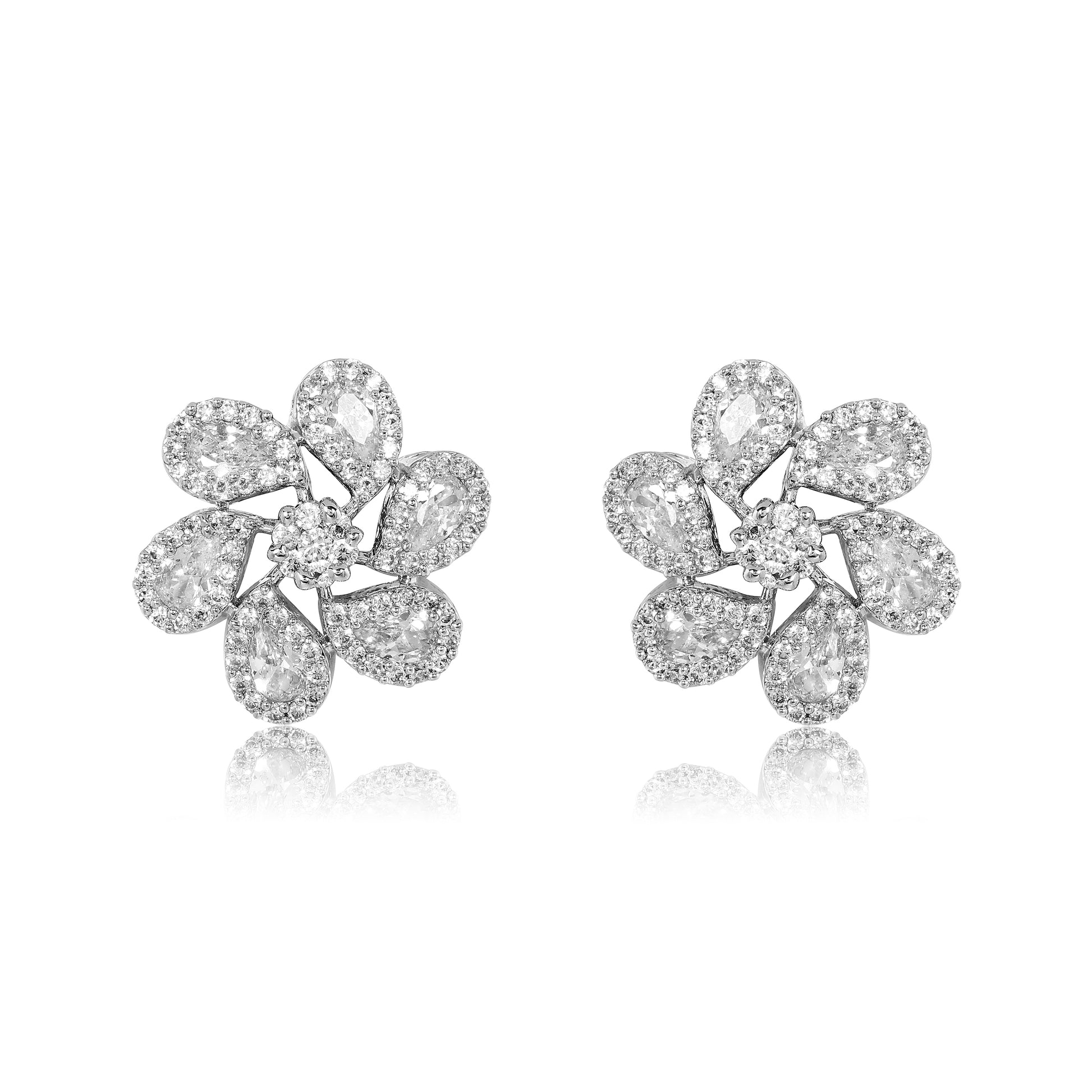 Delicate floral studs with pear-shaped diamonds are thoughtfully arranged to create a classic botanical design that feels both refined and wearable.