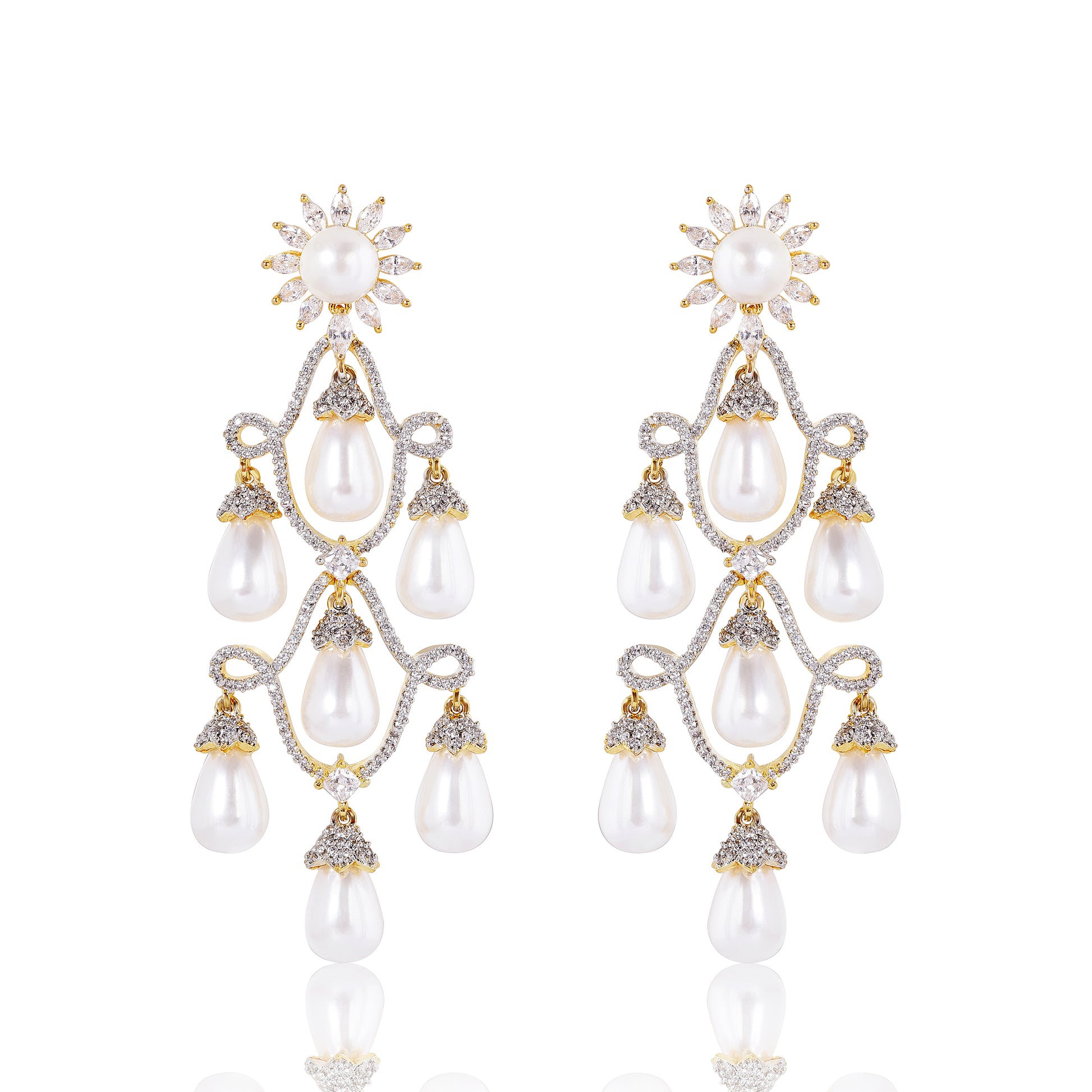 Chandelier Diamond Danglers - Gold, Silver & Pearl