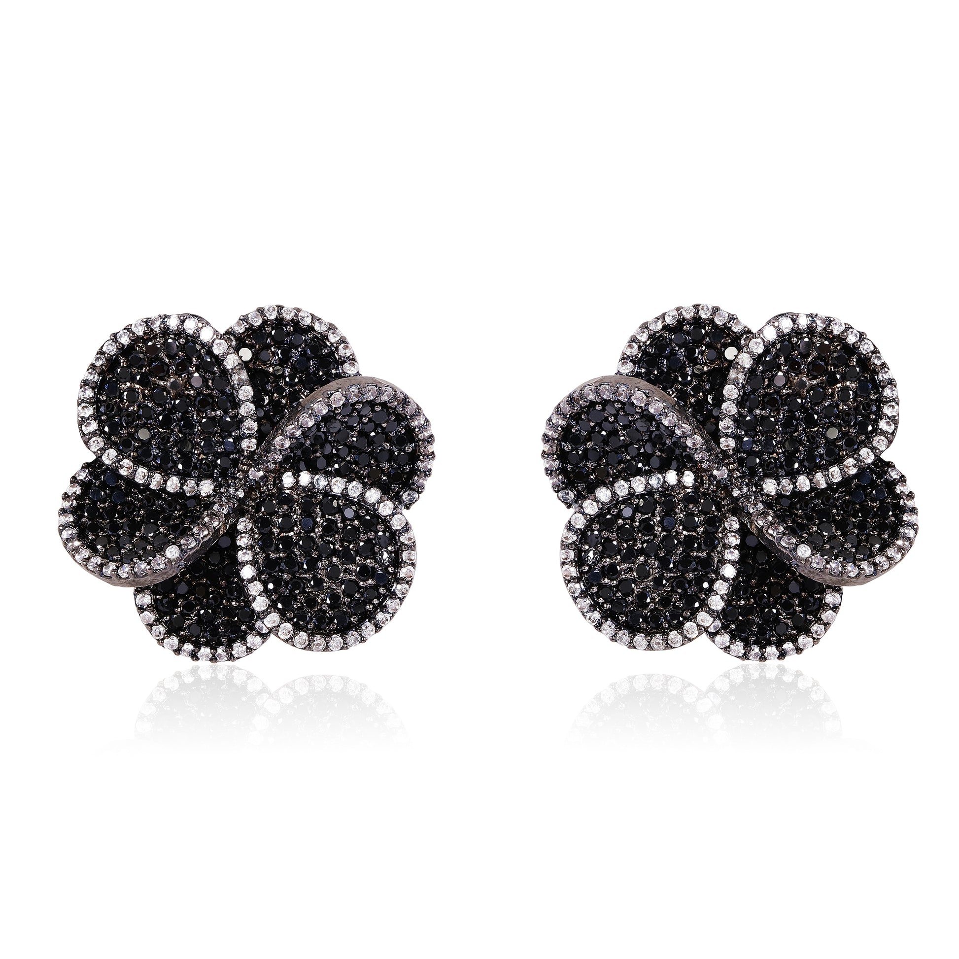 Elevate your collection with these sophisticated crystal Buds Earrings in black. Featuring a delicate floral design adorned with vibrant black gemstones, each earring showcases an invisible diamond setting that adds subtle brilliance without distraction.