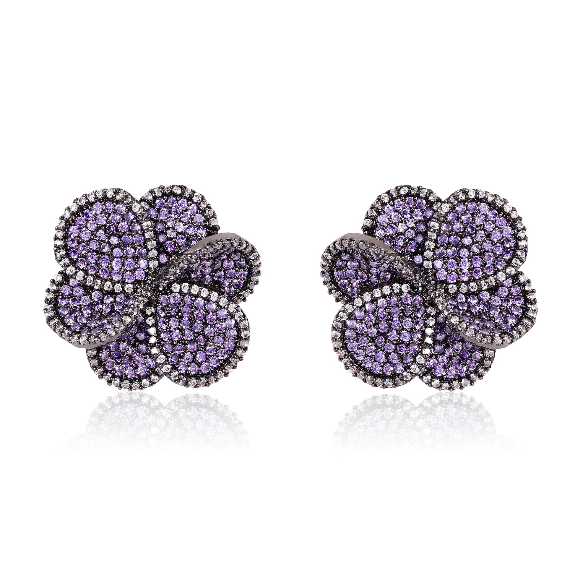 Elevate your collection with these sophisticated crystal buds earrings in lavender. Featuring a delicate floral design adorned with vibrant lavender gemstones, each earring showcases an invisible diamond setting that adds subtle brilliance without distraction.