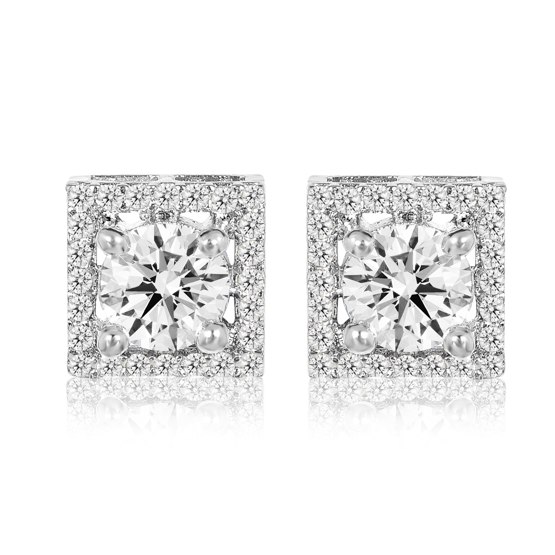 Diamond Solitaire Studs - Square - 1.25CT - Silver