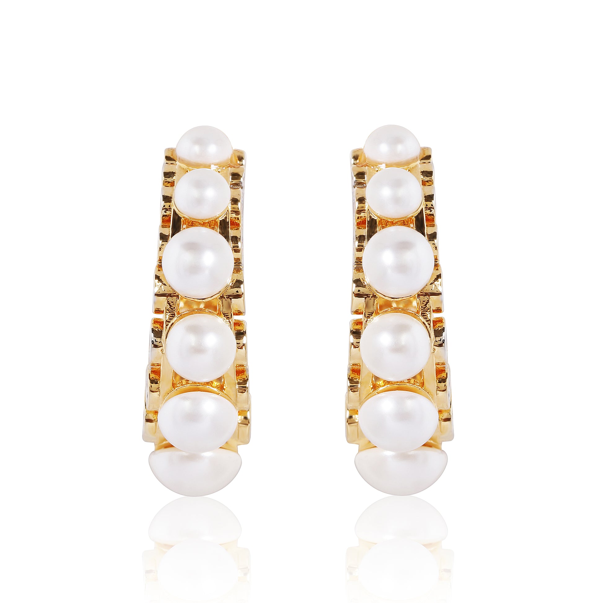 Crafted in gold-toned metal, these hoops adorned with pearls offer a timeless elegance that perfectly complements any Indian outfit.