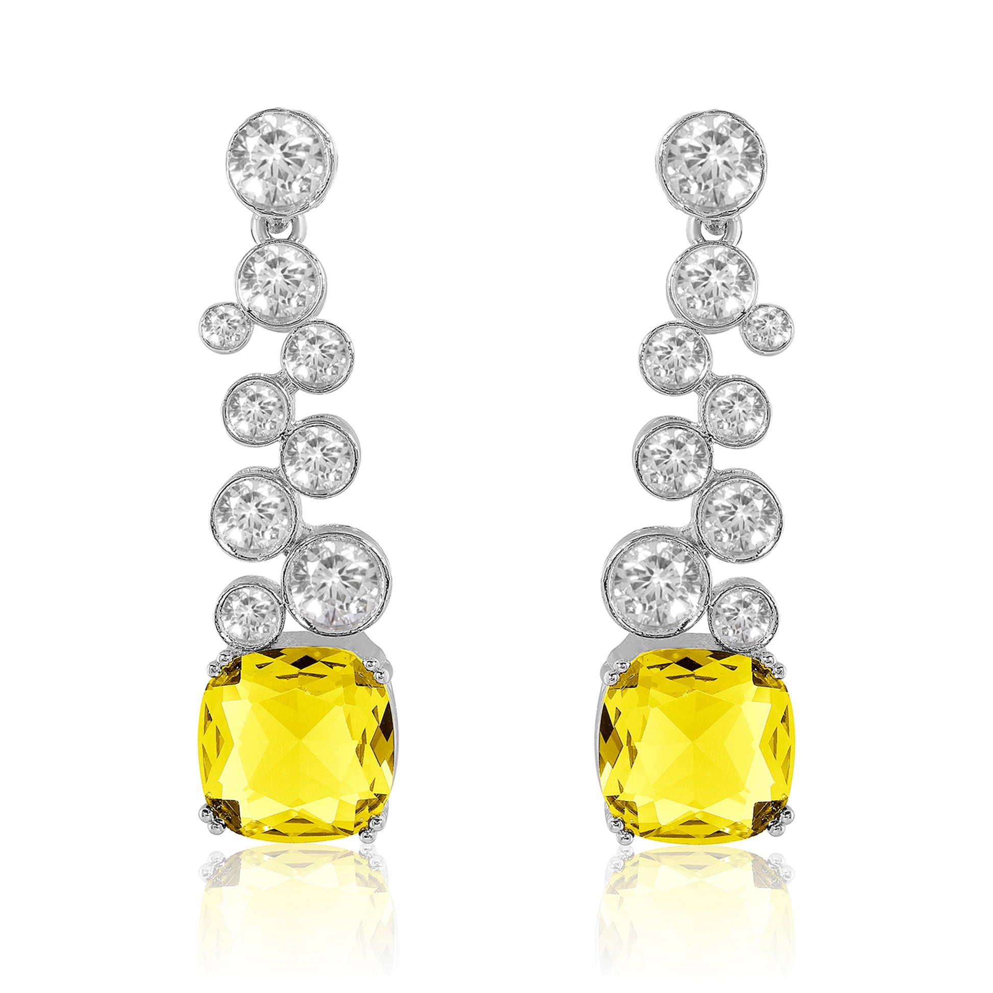 Elevate your elegance with the Huda Earrings in yellow, featuring exquisite beautiful stones paired with sparkling Cubic Zirconia diamonds. Designed as perfect droplets, these earrings offer a refined and graceful touch to any ensemble, making them an ideal choice for sophisticated occasions.