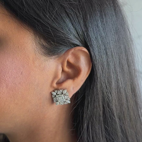 Discover the Mirage Stud Earrings, showcase a mesmerizing mosaic of diamond-like sparkles arranged in a geometric square pattern. The refined design works with virtually any style, whether you're going for minimalist chic or dressed-up sophistication.