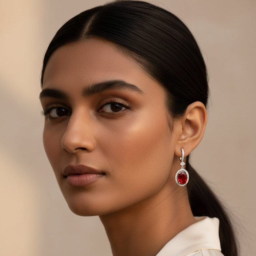 Elevate your style with the Moonbeam Earrings in a stunning red hue. Featuring elegant drop design accented with sparkling diamonds, these earrings add a touch of sophistication to any outfit. Perfect for all occasions, they effortlessly blend timeless charm with modern grace.