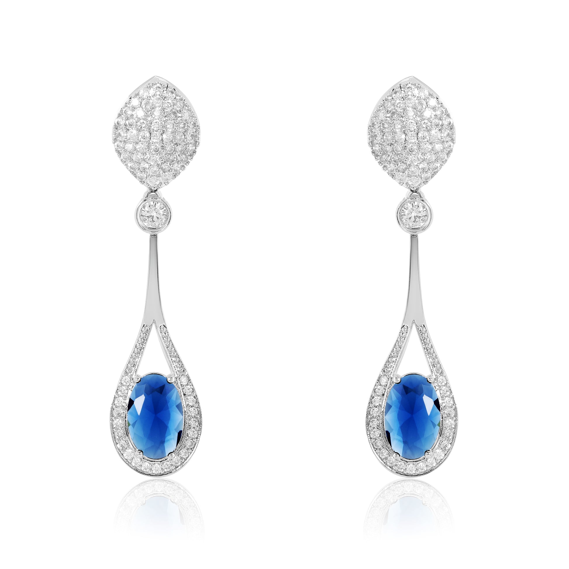 Elevate your style with the Muse earrings in stunning sapphire blue. Their sleek and elegant design adds a refined sparkle to any outfit, making them perfect for all occasions.