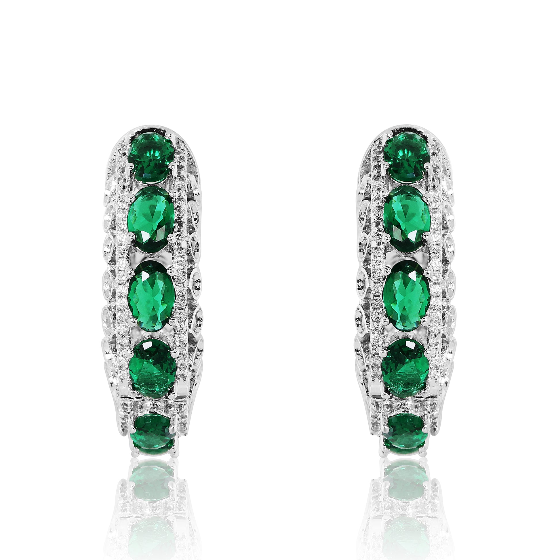 Noorika Hoops showcases intricate carved designs accented with sparkling cubic zirconia and highlighted by vibrant Green gemstones at the front. These elegant hoops complement traditional Indian attire beautifully, while their refined style adds a delicate cultural touch when paired with contemporary western outfits. Perfect for those seeking a sophisticated blend of heritage and modernity.