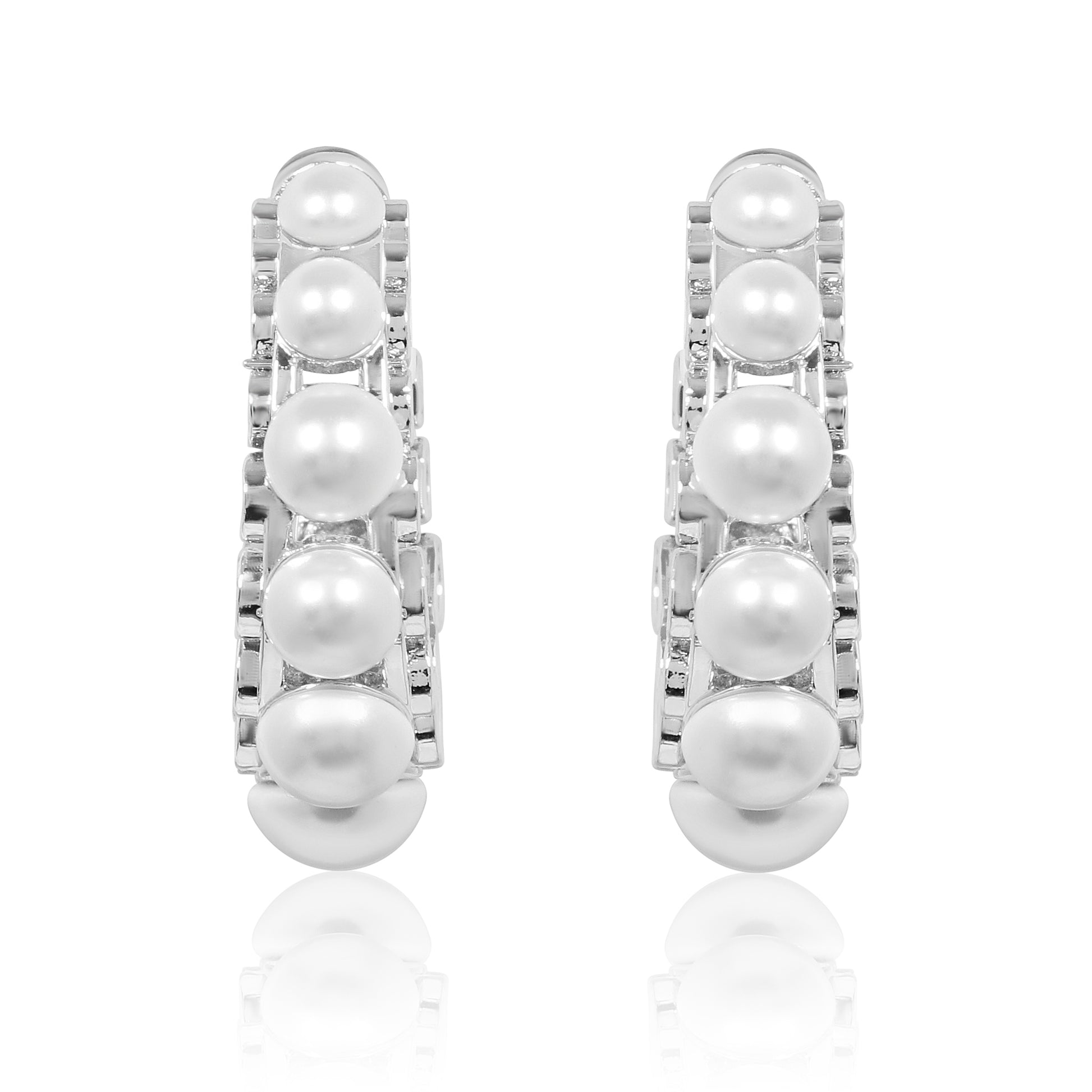 Crafted in silver-toned metal, these hoops adorned with pearls offer a timeless elegance that perfectly complements any Indian outfit.